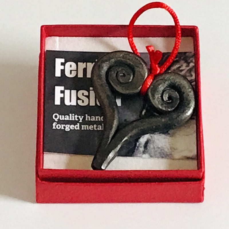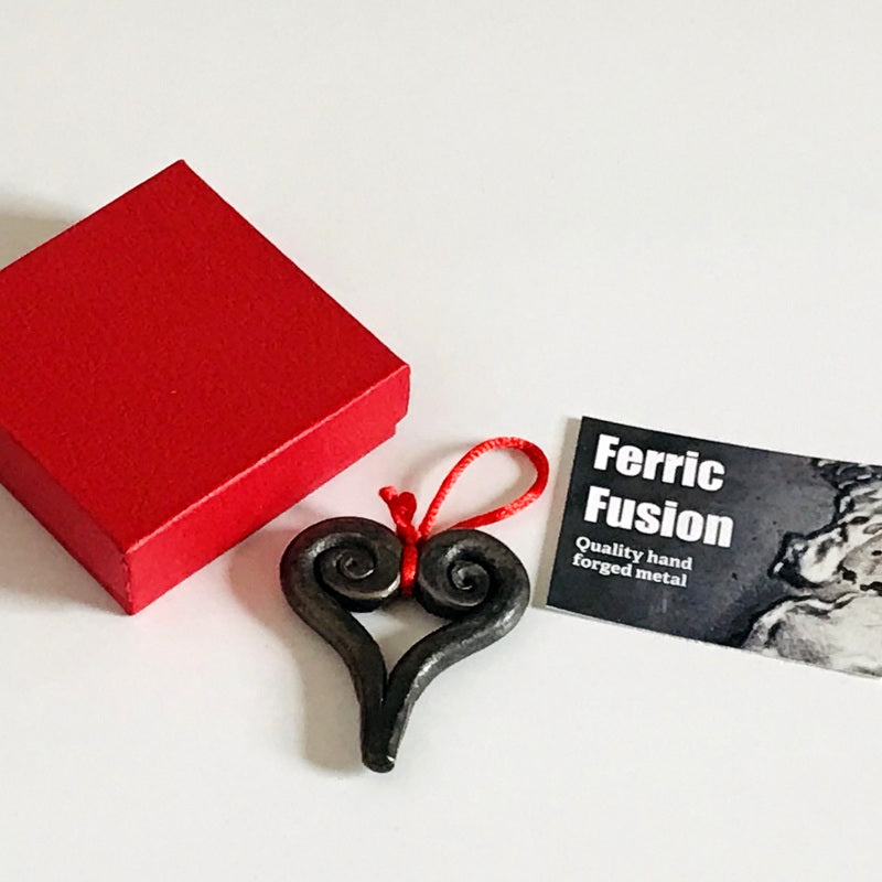 Small hand forged wrought iron hanging heart presented in a lovely red gift box