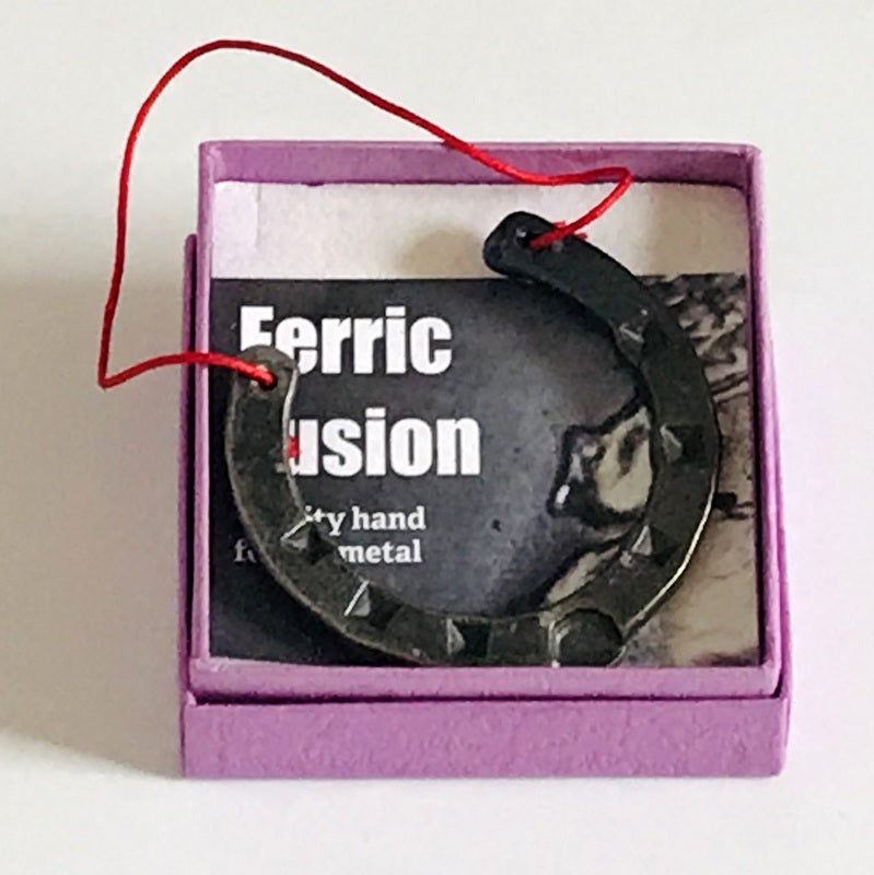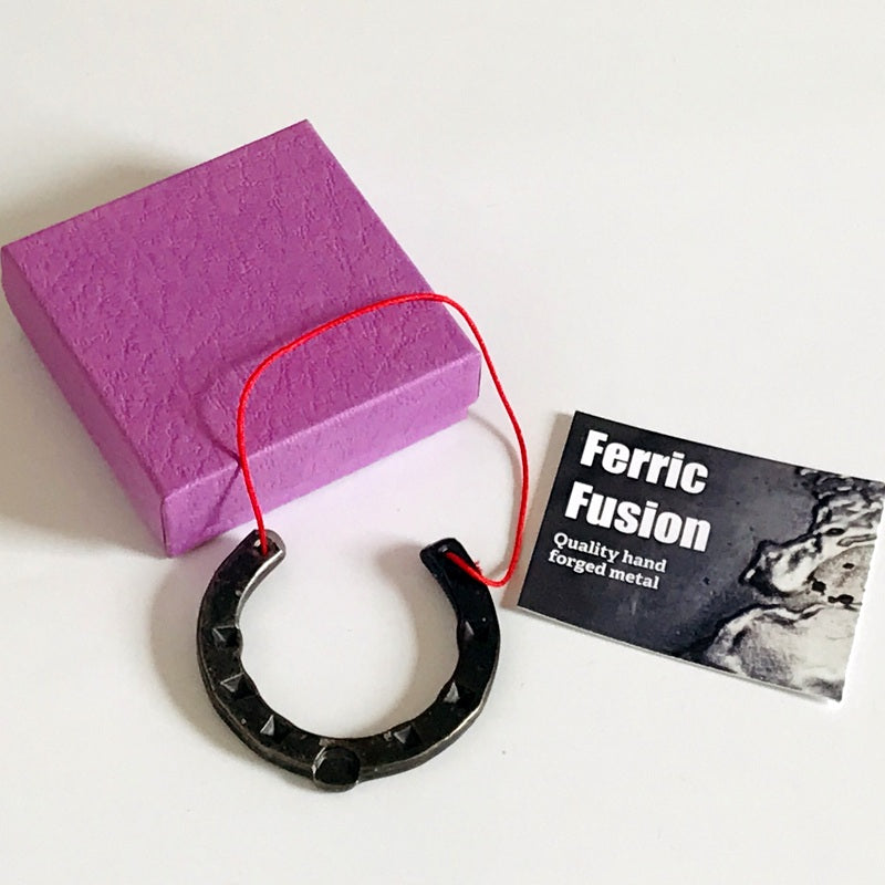 Hand forged small wrought iron hanging horseshoe which comes in a lovely gift box